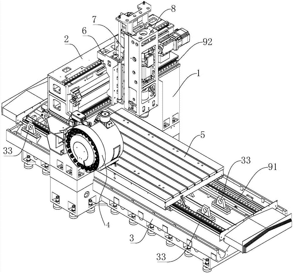 工件被牢固地夹持在工作台上,工作台可以沿Y轴(垂直于横梁的方向)和Z轴(垂直于工作台表面的方向)移动。这种多轴移动能力使得龙门加工中心能够加工出复杂的三维形状。